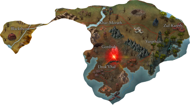 The Orcs inhabit the darkened regions of the southern expanse, a harsh and corrupted land where Death, Poison, Blood, and Mind-control crystals coexist. They are a war-driven society built around strength, dominance, and survival rather than refined politics.